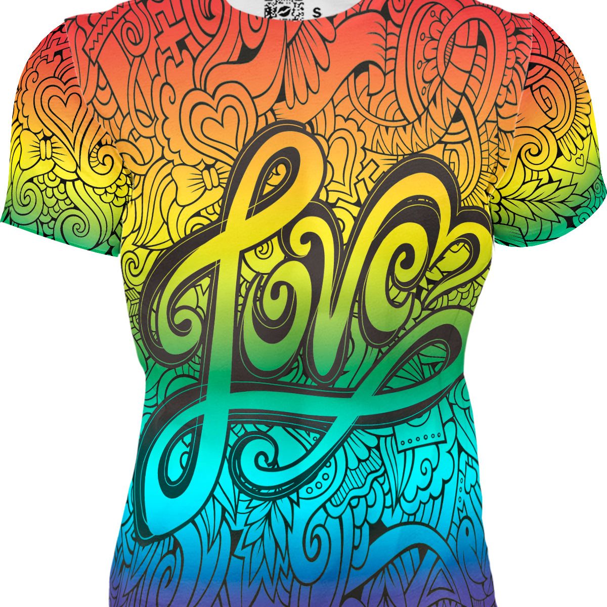 Playera Full Print Caballero Amor Arcoíris Rainbow Love Corazones