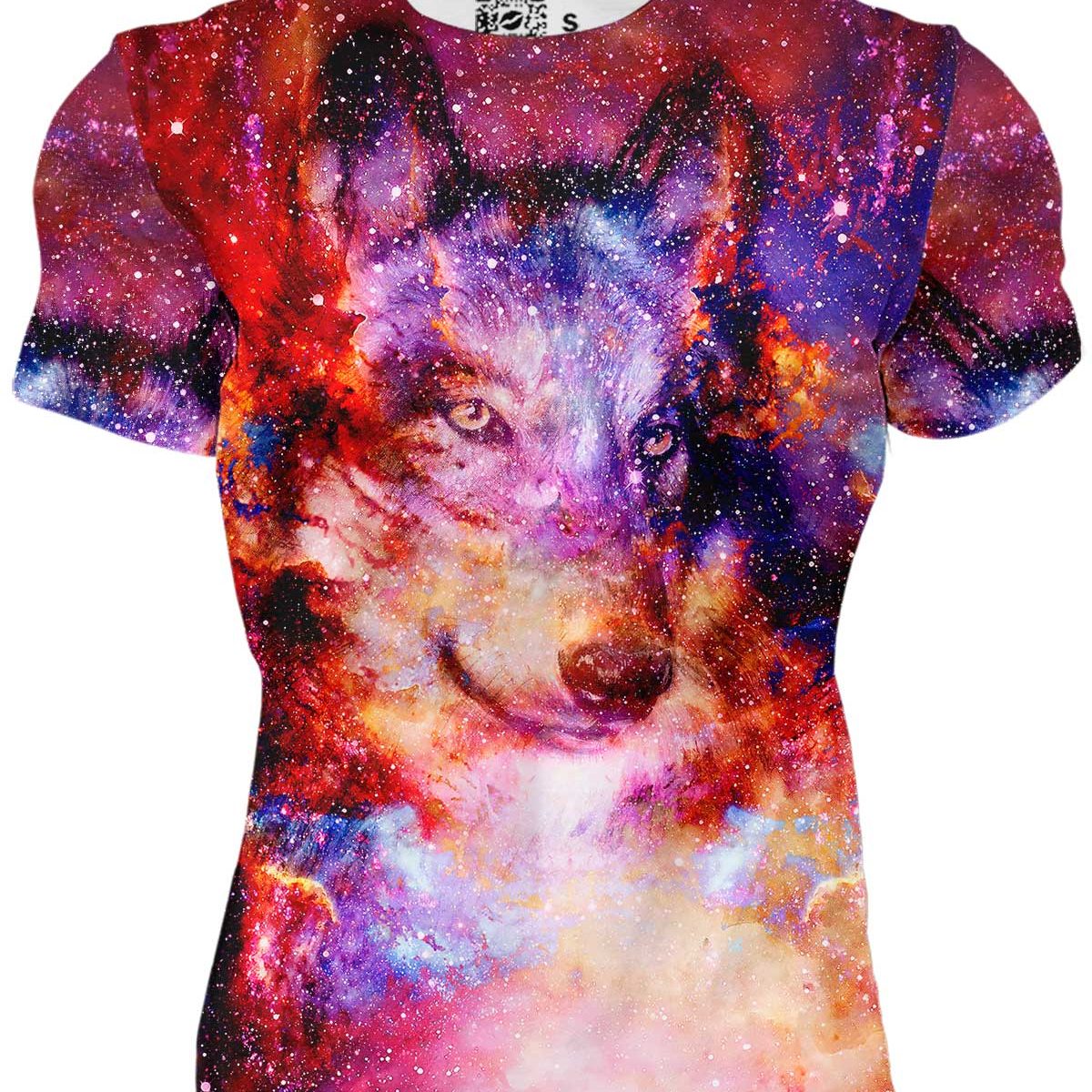 Playera Full Print Sublimada Caballero Lobo Cósmico
