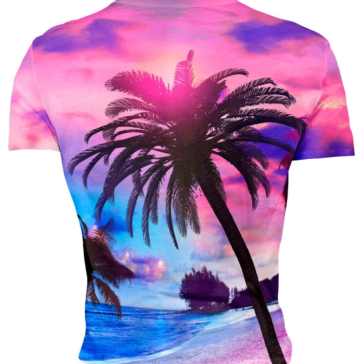 Playera Sublimada Palmeras Cielo Playa Rosada