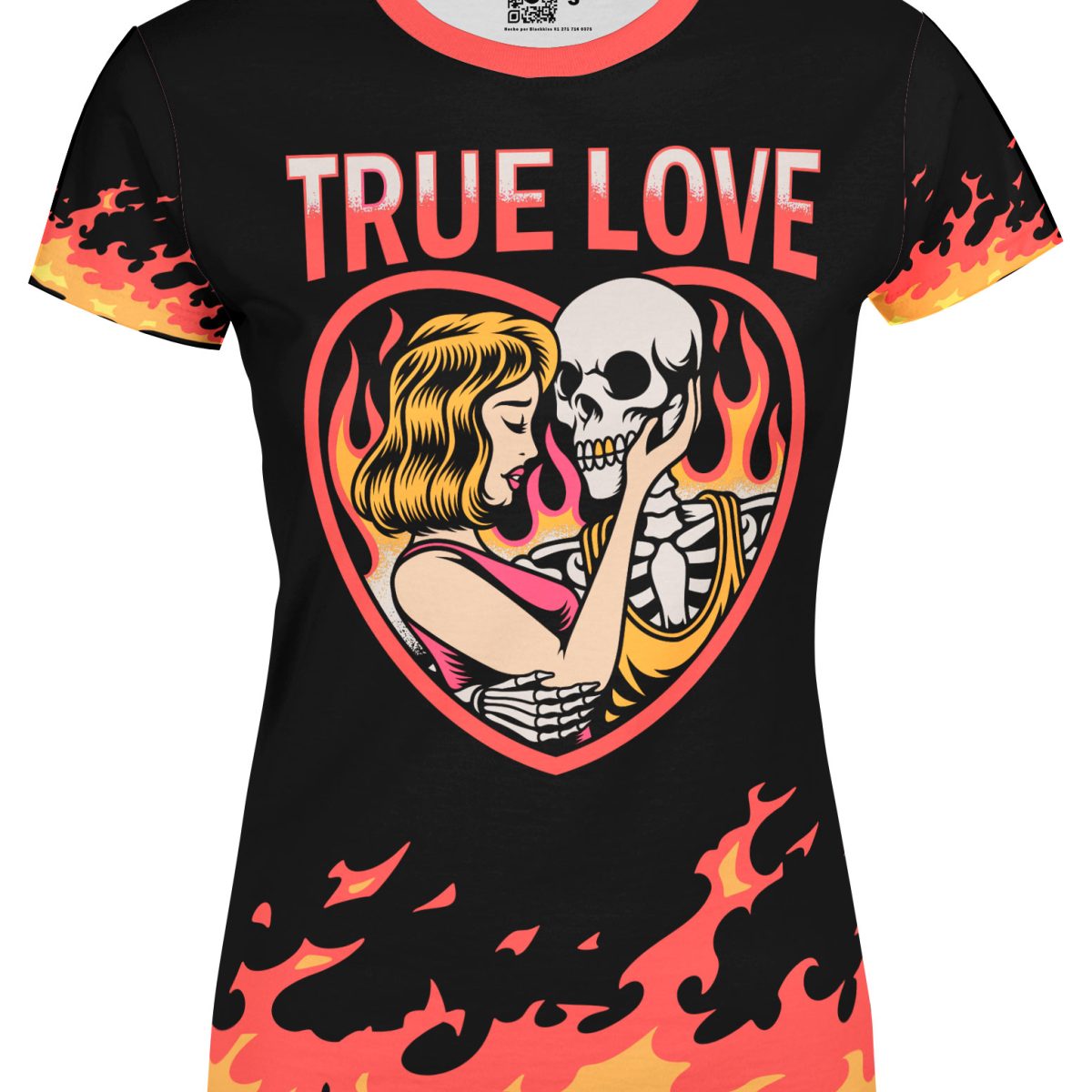 Playera Full Print Dama Pareja Calavera Fuego True Love