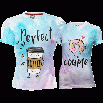 Playeras de Pareja Amor Café Dona Perfect Couple Azul Rosa