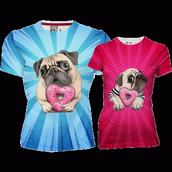 Playeras de Pareja Amor Pugs Dona Corazón Azul Rosa