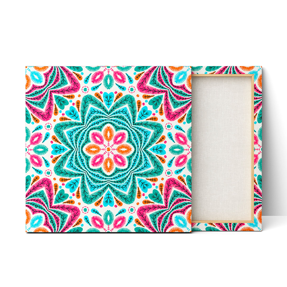 Cuadro Canvas Mandala Estilo Huichol Turquesa Rosa