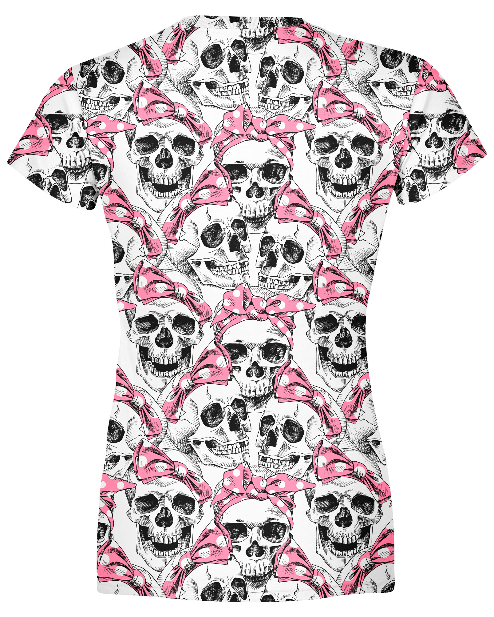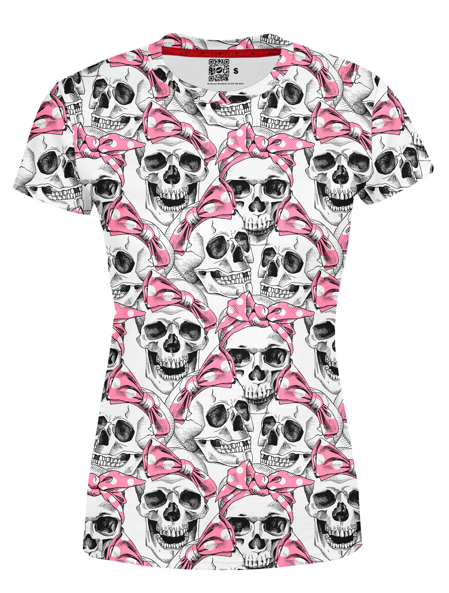 Playera Full Print Dama Cráneos Moñitos