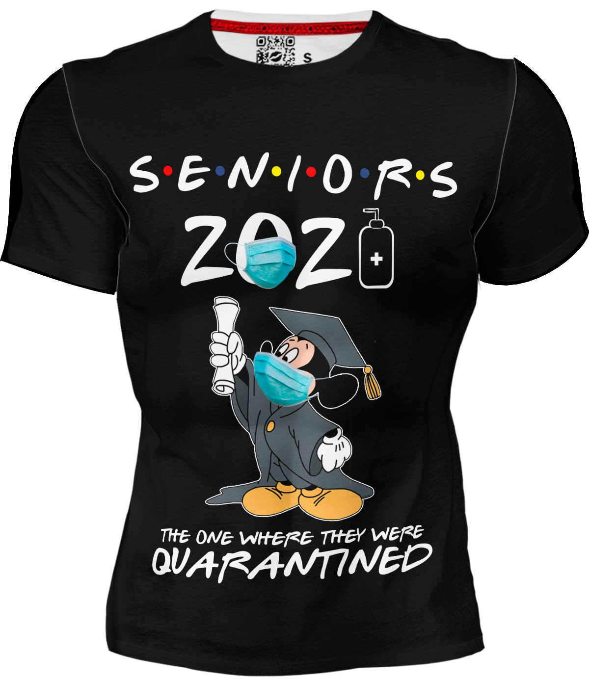 Playera Full Print Negra Graduación Seniors 2021 Covid Mickey