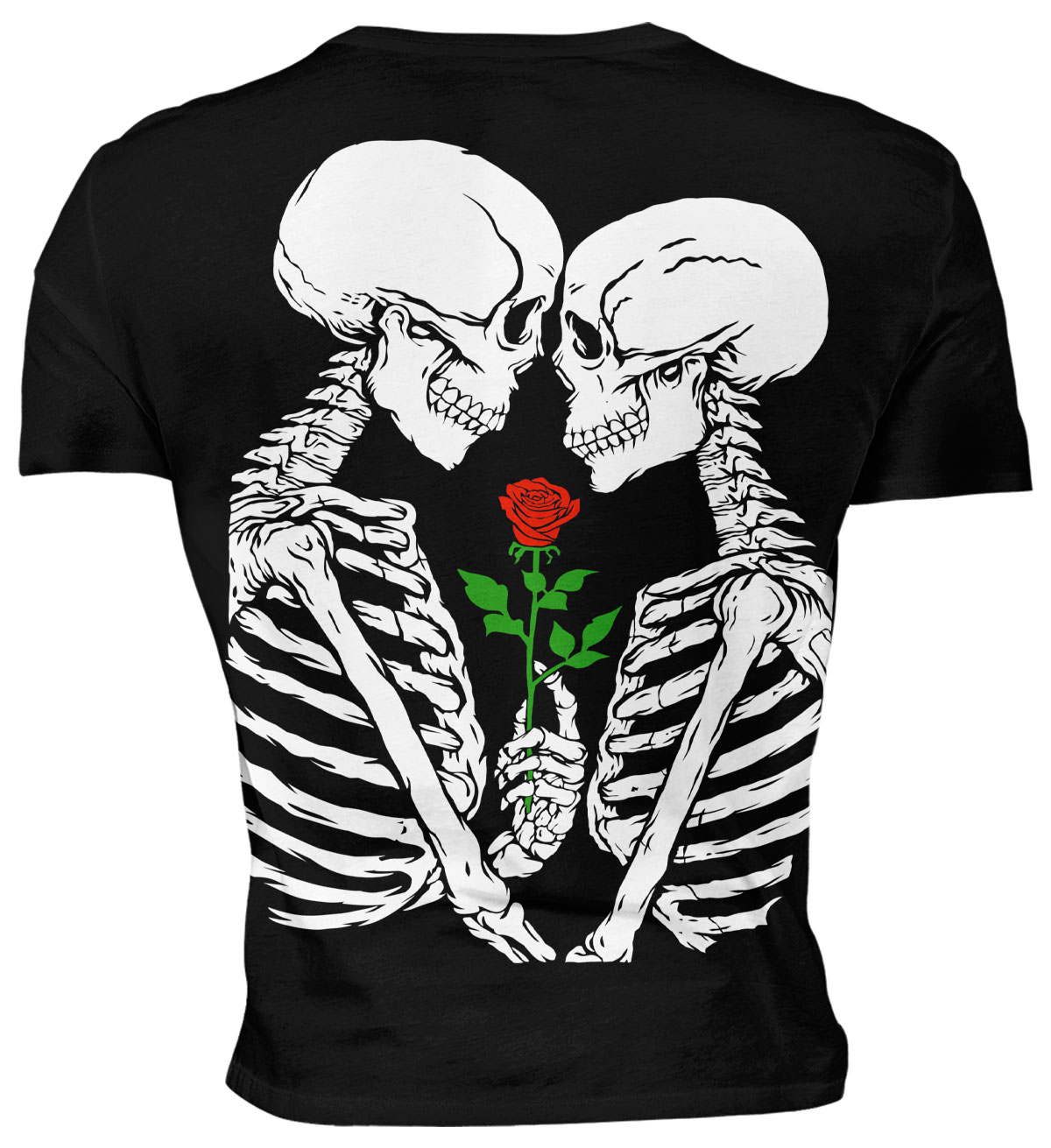 Playera Full Print Sublimada Caballero Calavera Pareja Abrazo Rosa