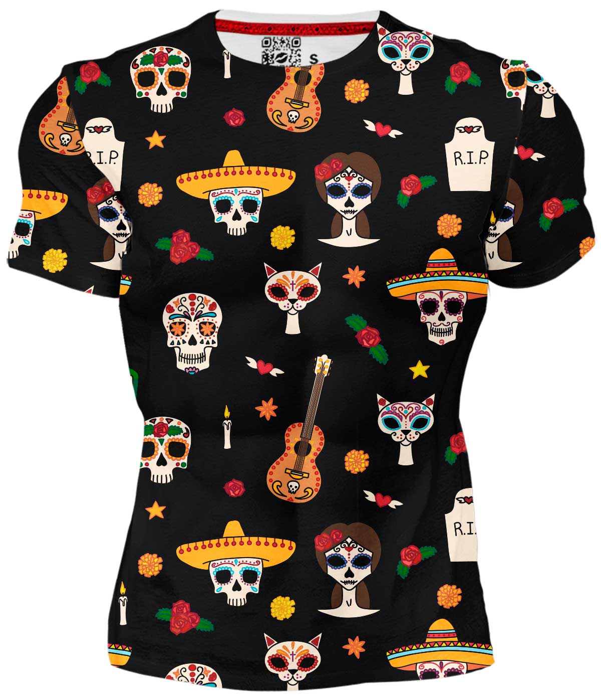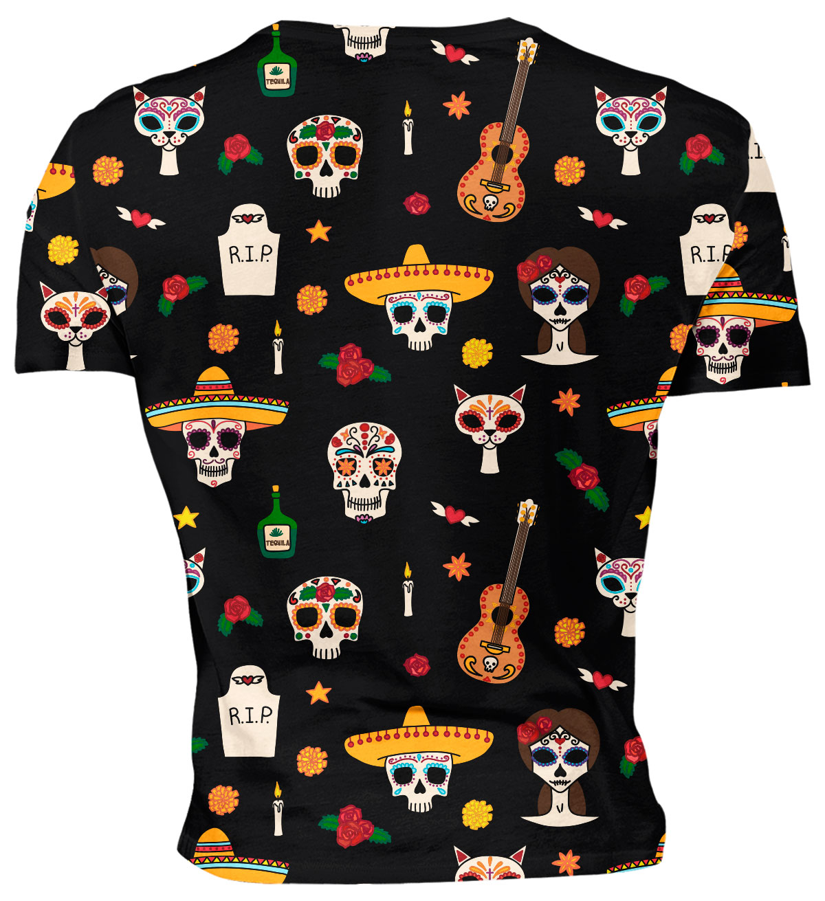 Playera Full Print Sublimada Caballero Catrines Gatos y Guitarras