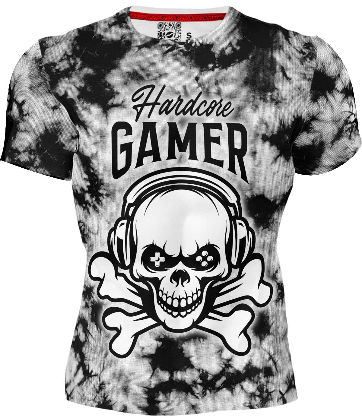 Playera Full Print Tie Dye Gris Calavera Gamer Hardcore