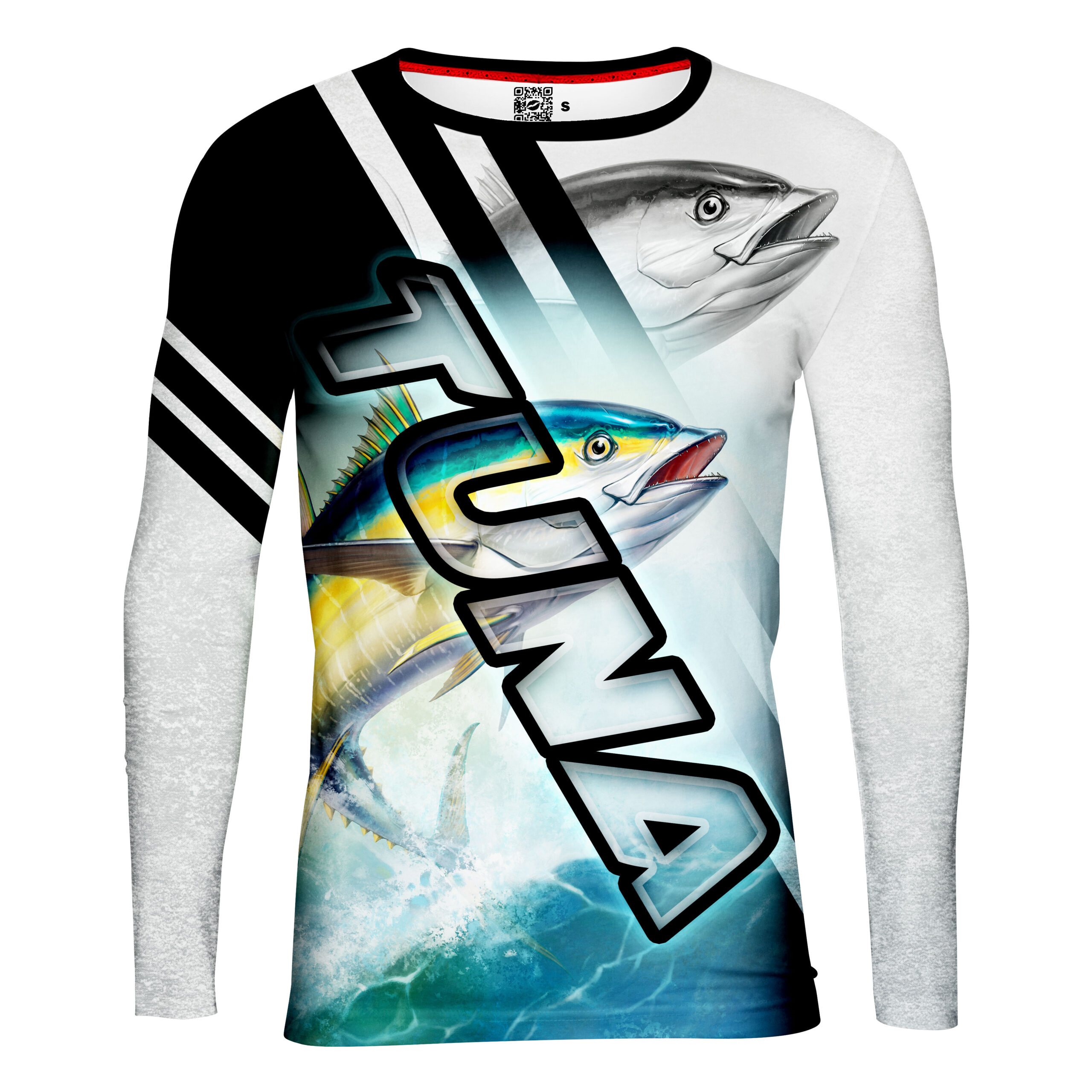 Playera Jersey Pesca Deportiva M Larga Pez Tuna Blanco Negro