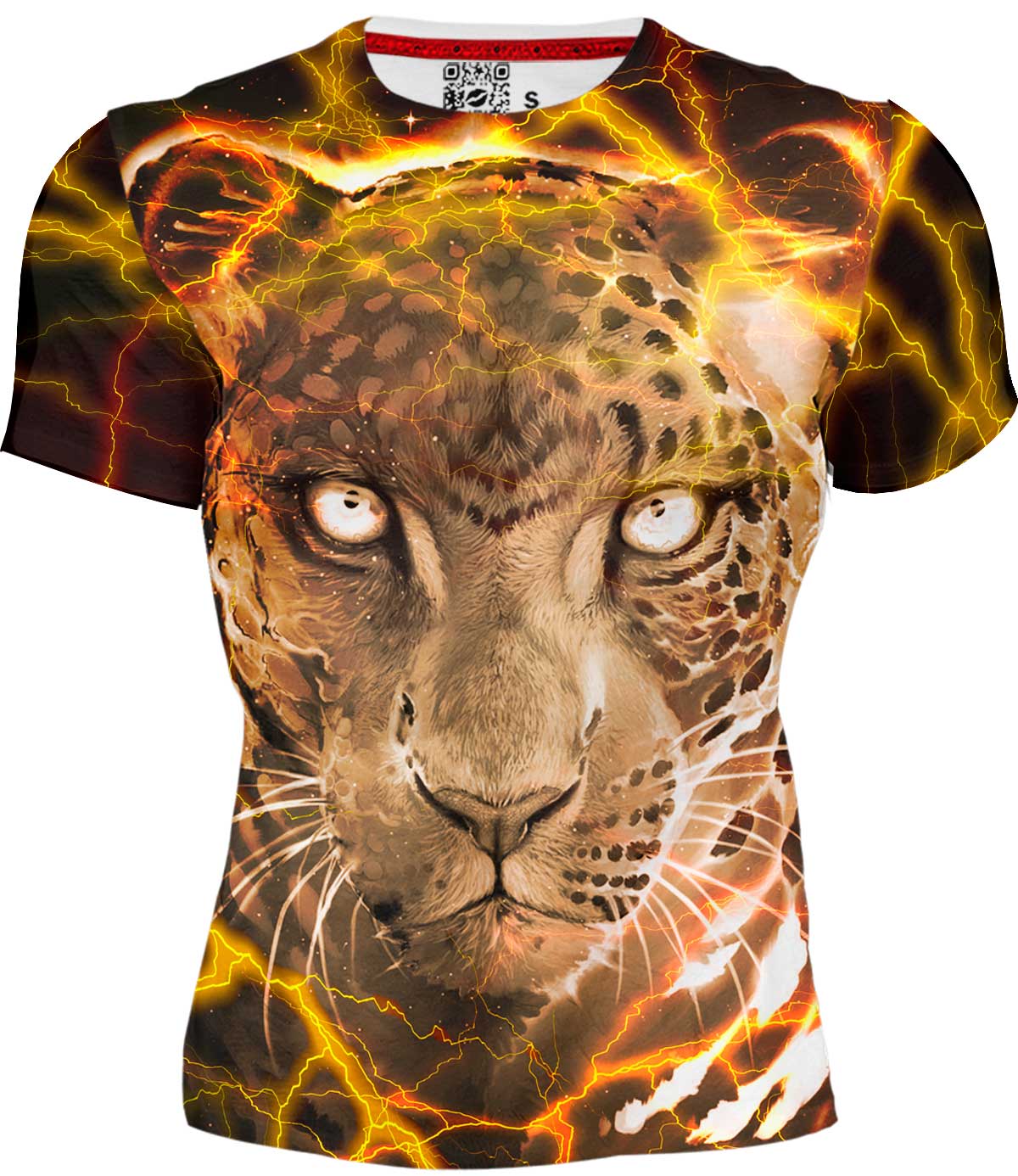 Playera Sublimada Caballero Rostro Jaguar Rayos Dorados