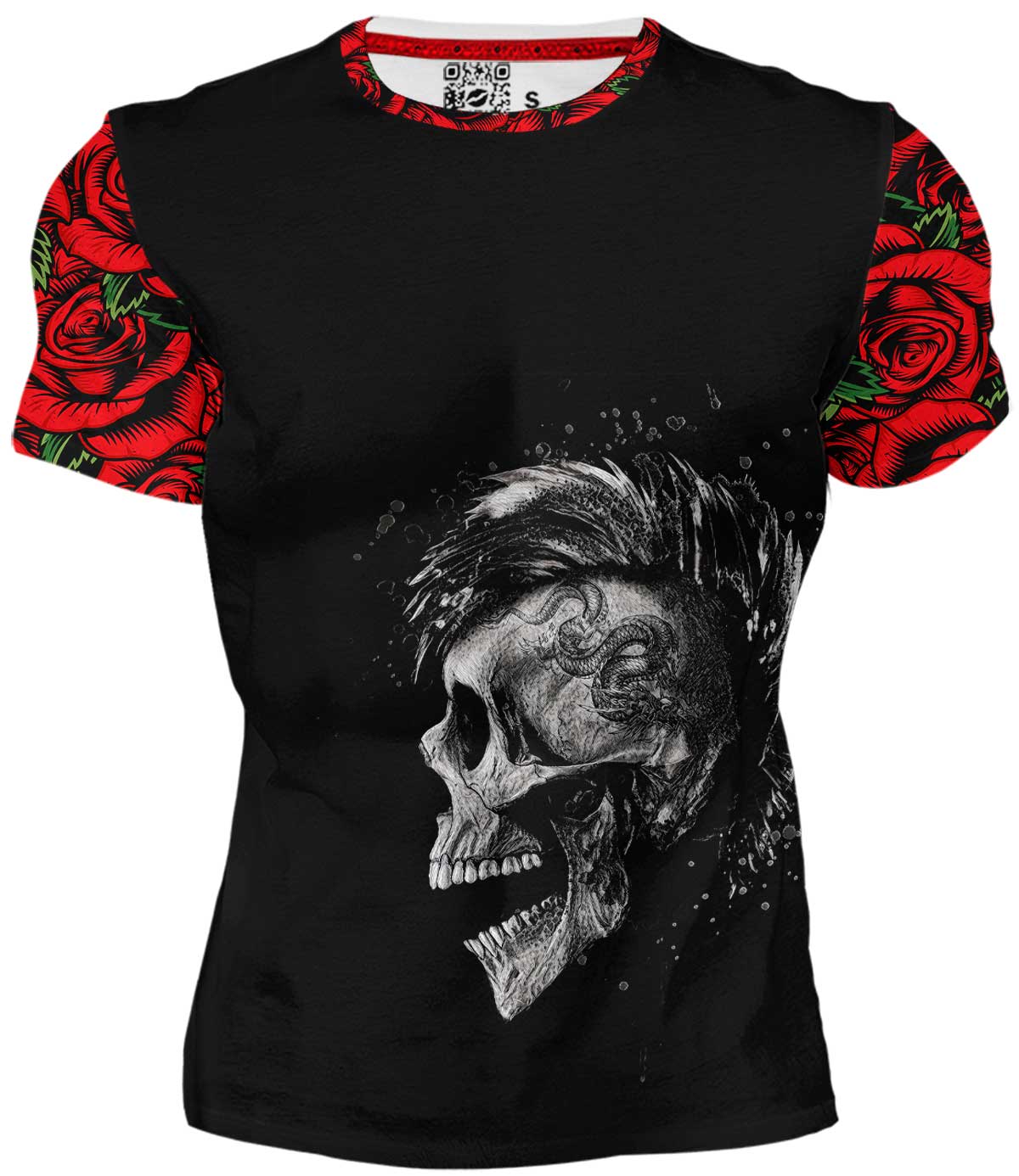 Playera Sublimada Calavera Punk Serpiente Rosas Rojas Tattoo