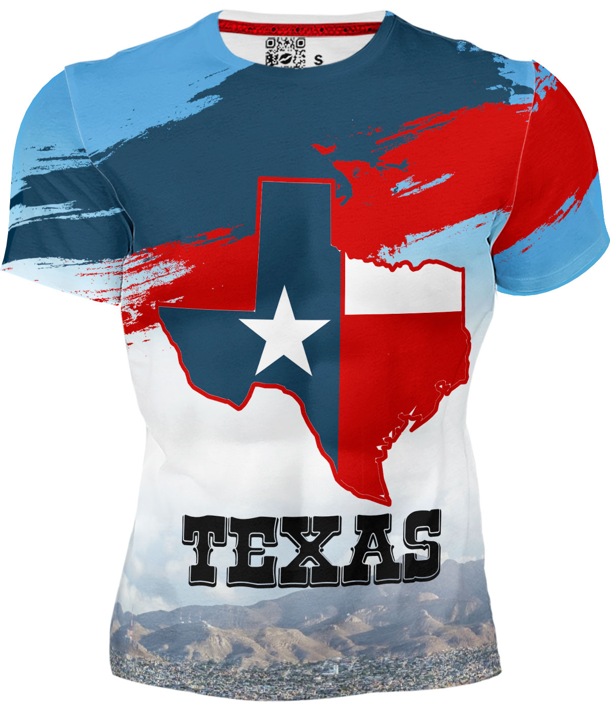 Playera Sublimada Full Print Bandera Texas Silueta Estado
