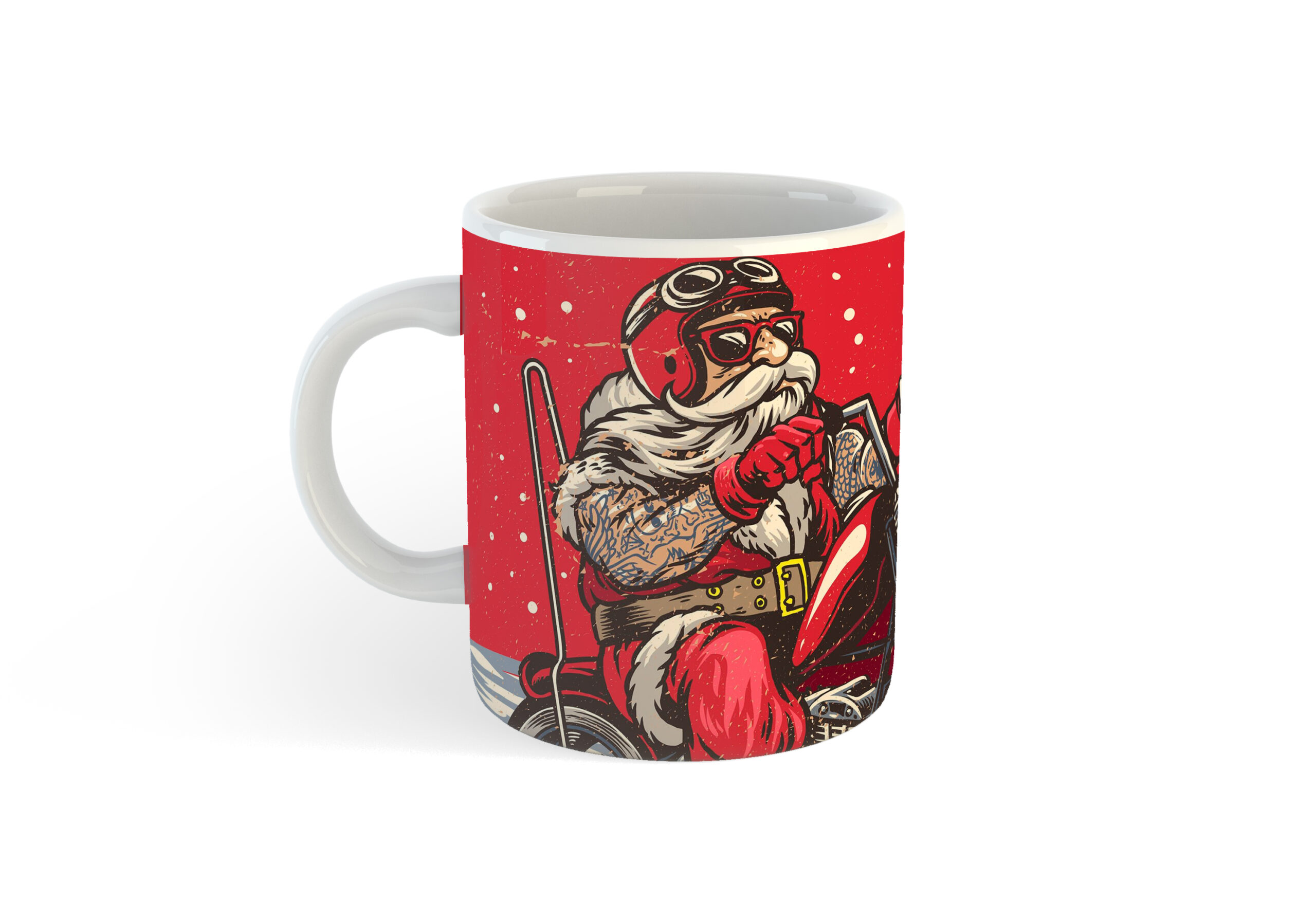 Taza Impresión Merry Christmas Feliz Navidad Santa Biker
